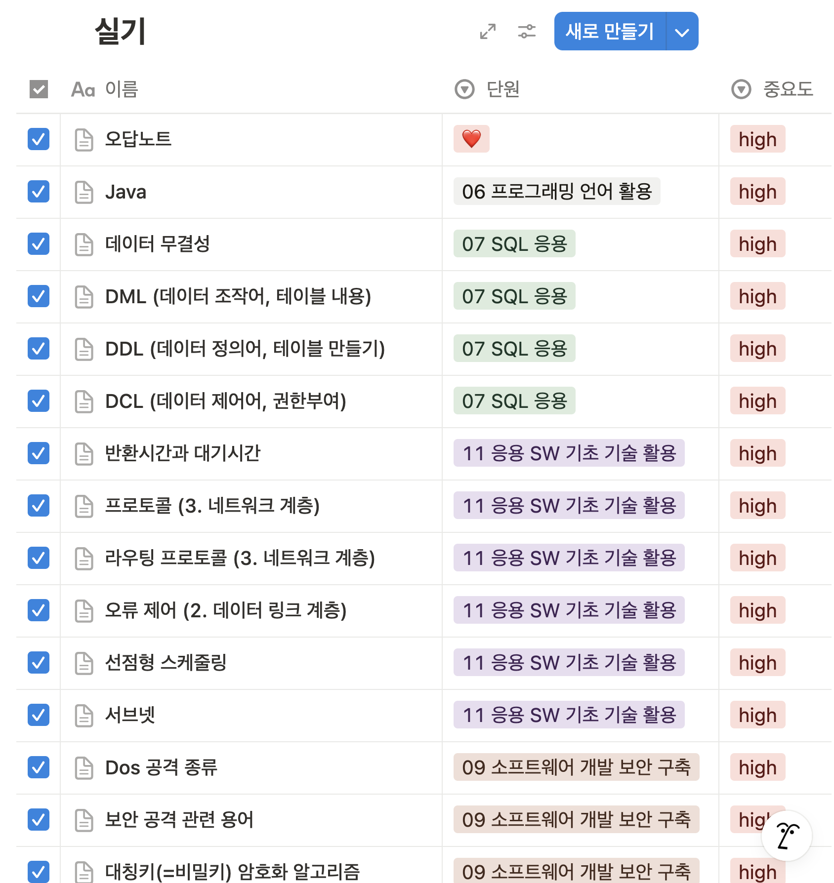 사실 작년에 필기를 합격하면서 실기 책을 미리 샀었다. 그래서 2024년 기본서로 공부했다. 먼저 책의 개념을 대충 읽으면서 이전 시험에서 2회 이상 출제된 부분 중 헷갈리는 개념을 노션에 정리했다. 이후 바로 문제풀이를 하고, 모르는 부분은 검색해가며 공부했다. 앞에서 언급했듯 2024년부터 기조가 바뀌었기 때문에, 책에 있는 약술형 문제들은 풀지 않고 읽고만 넘어갔다.