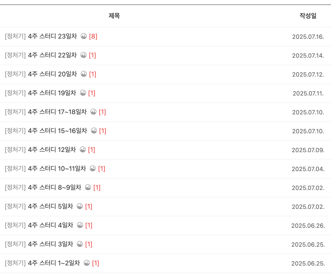 프론트엔드 개발을 하다 보니 Java에 대한 이해가 전혀 없었다. 또 필기 이후 이미 1년이 지났기 때문에 빨리 합격하고 싶어 공부 기간을 길게 잡았다. 4주간 평일에만 평균 2시간씩 투자했다. 혼자 하면 미룰 것 같아서, 수제비 카페에 공부 인증을 하는 4주 스터디에 참여했다. 4주간의 계획이 이미 짜여져 있어서 편했다. 적혀 있는 일정보다는 빠르게 1회독을 마치고 4일 전부터는 최신 기출 풀이에만 전념했는데, 좋은 선택이었다.