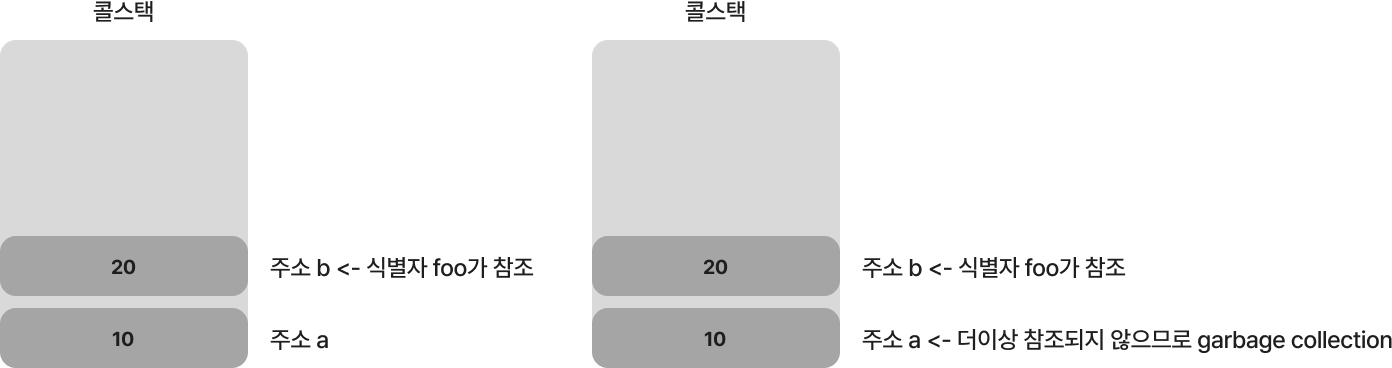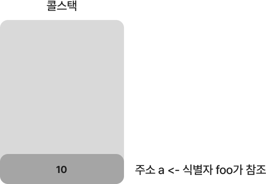 let foo = 10; // 변수 foo에는 10이 저장된 콜스택 메모리의 주소값이 저장