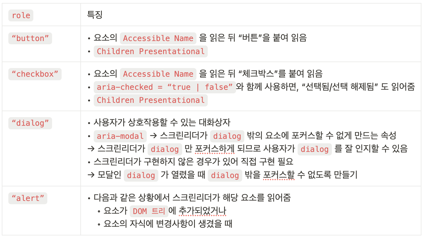 - 스크린리더가 요소를 포커스했을 때 읽는 값