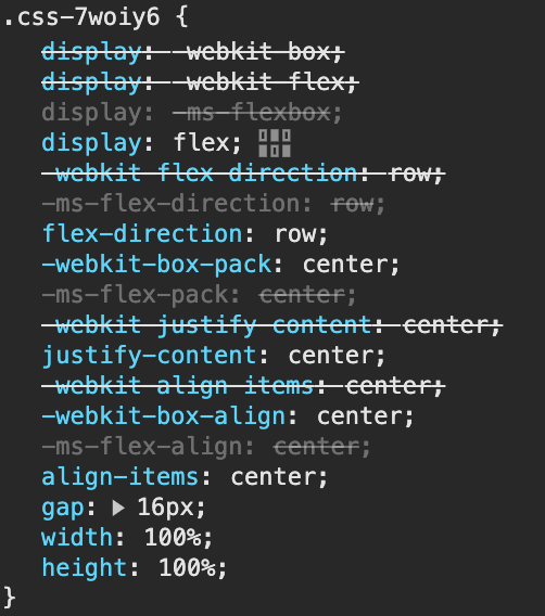 이전 프로젝트들을 확인해보니 emotion, styled-component에서는 자동으로 vendor prefix가 추가되고 있었다..! 참고해서 중복으로 작성하지 않도록 주의하자.