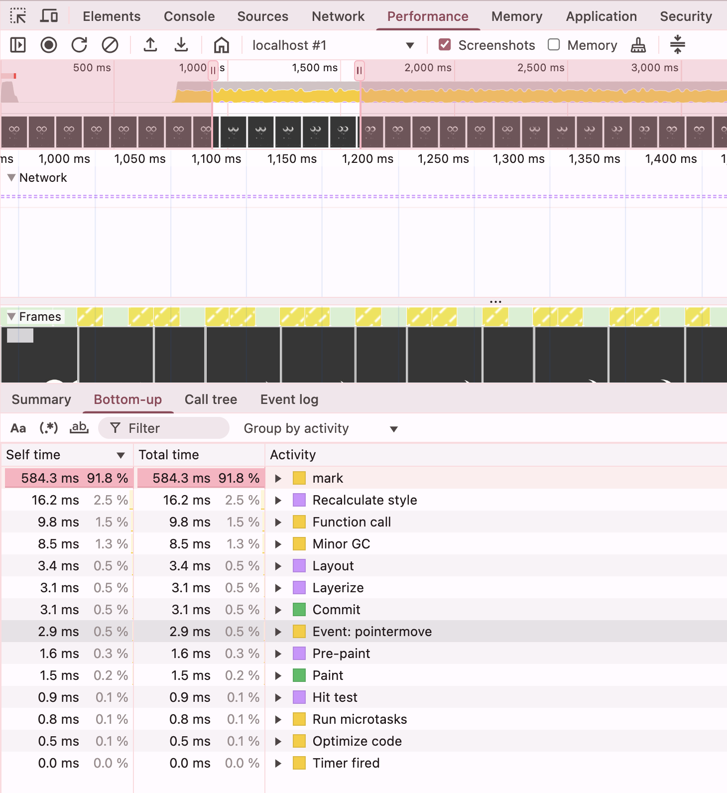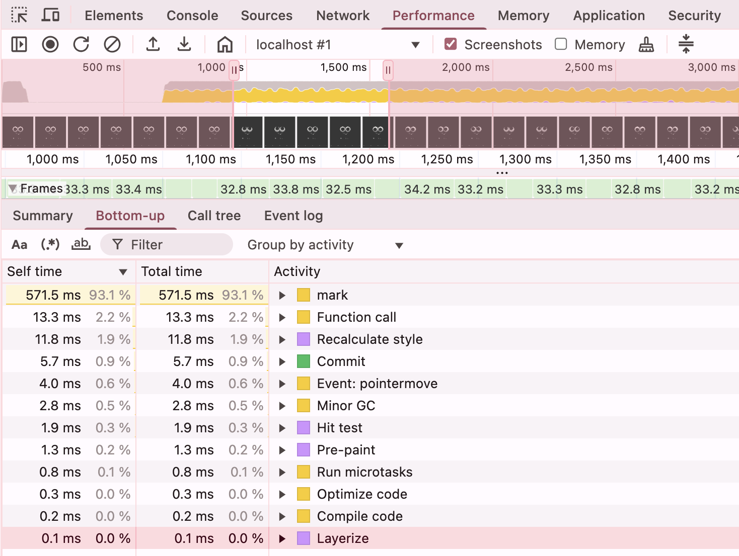 당연히 괜찮지 않았다. 마우스가 이동할 때마다 포지션이 변경되는데, top과 left가 계속해서 변경되면서 리플로우를 유발하고 있다..