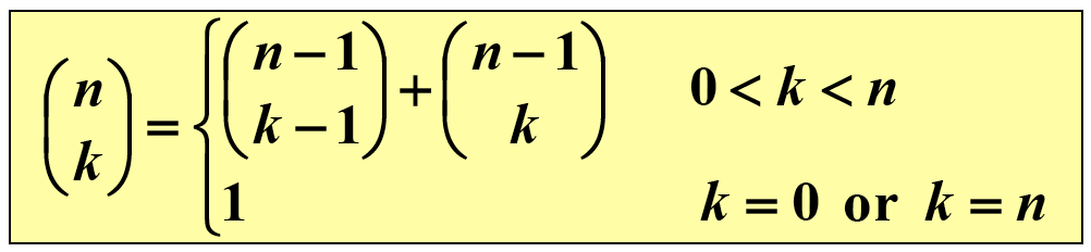 1️⃣ 나머지 경우는 이항계수의 2번 성질을 활용하여 구현
